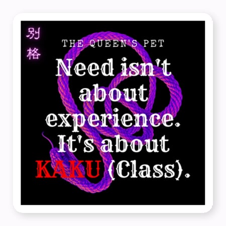背負うのは、意志か、それとも宿命か。 『The Queen's Pet』三部作の最重要理念である「格(Class / KAKU)」を、剥き出しのタイポグラフィとしてステッカーに封印しました。